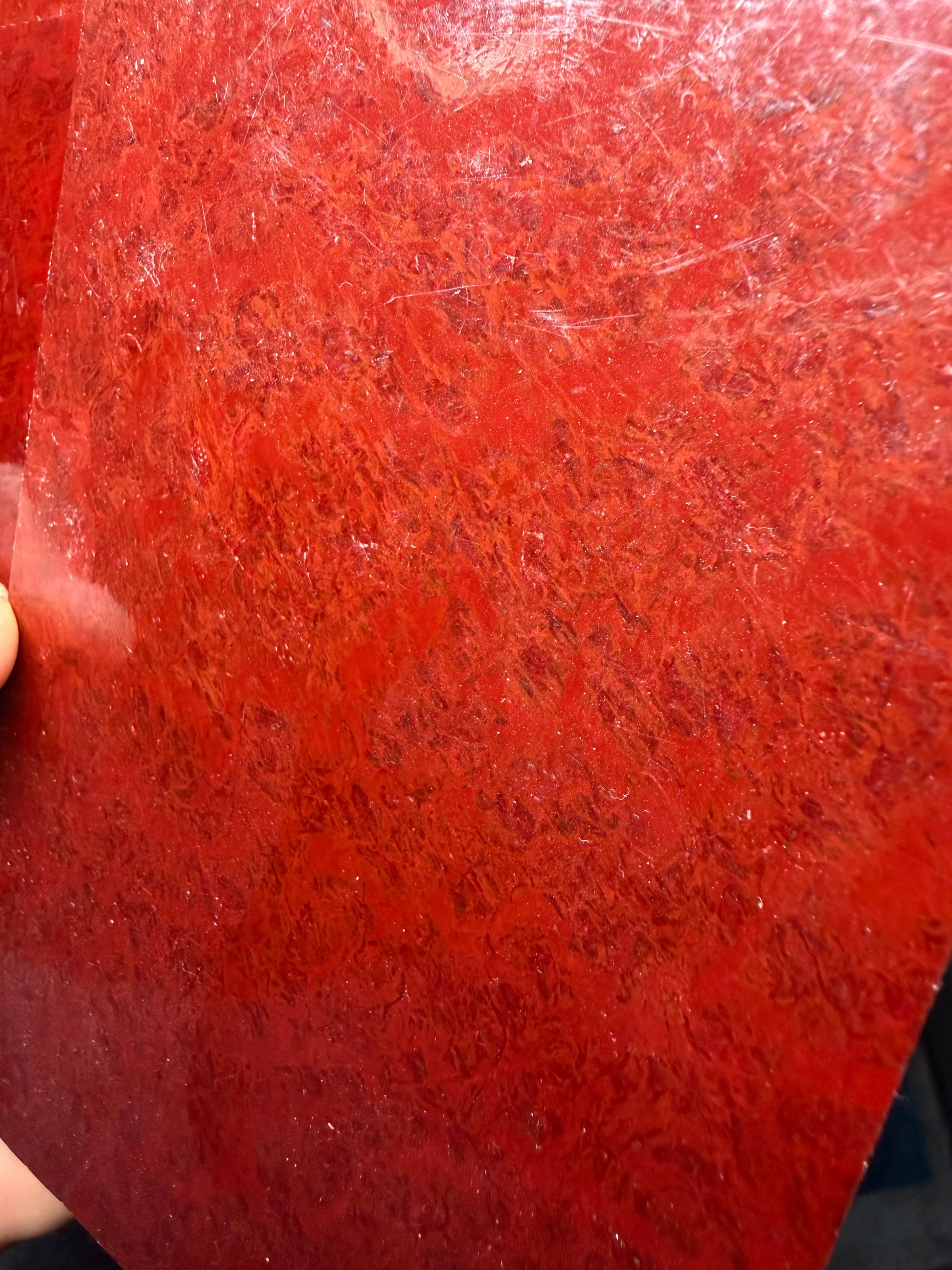 Vintage Bright Red Rag Micarta 5” x 3” x .14+”