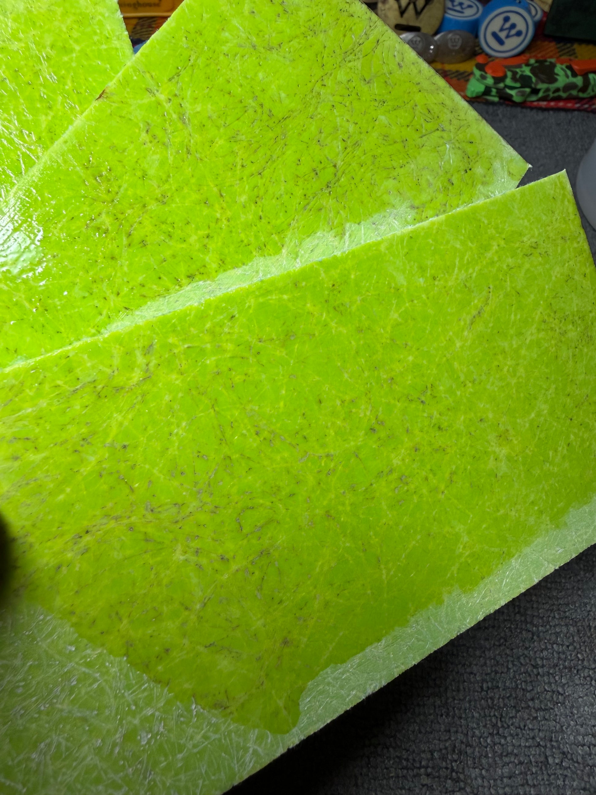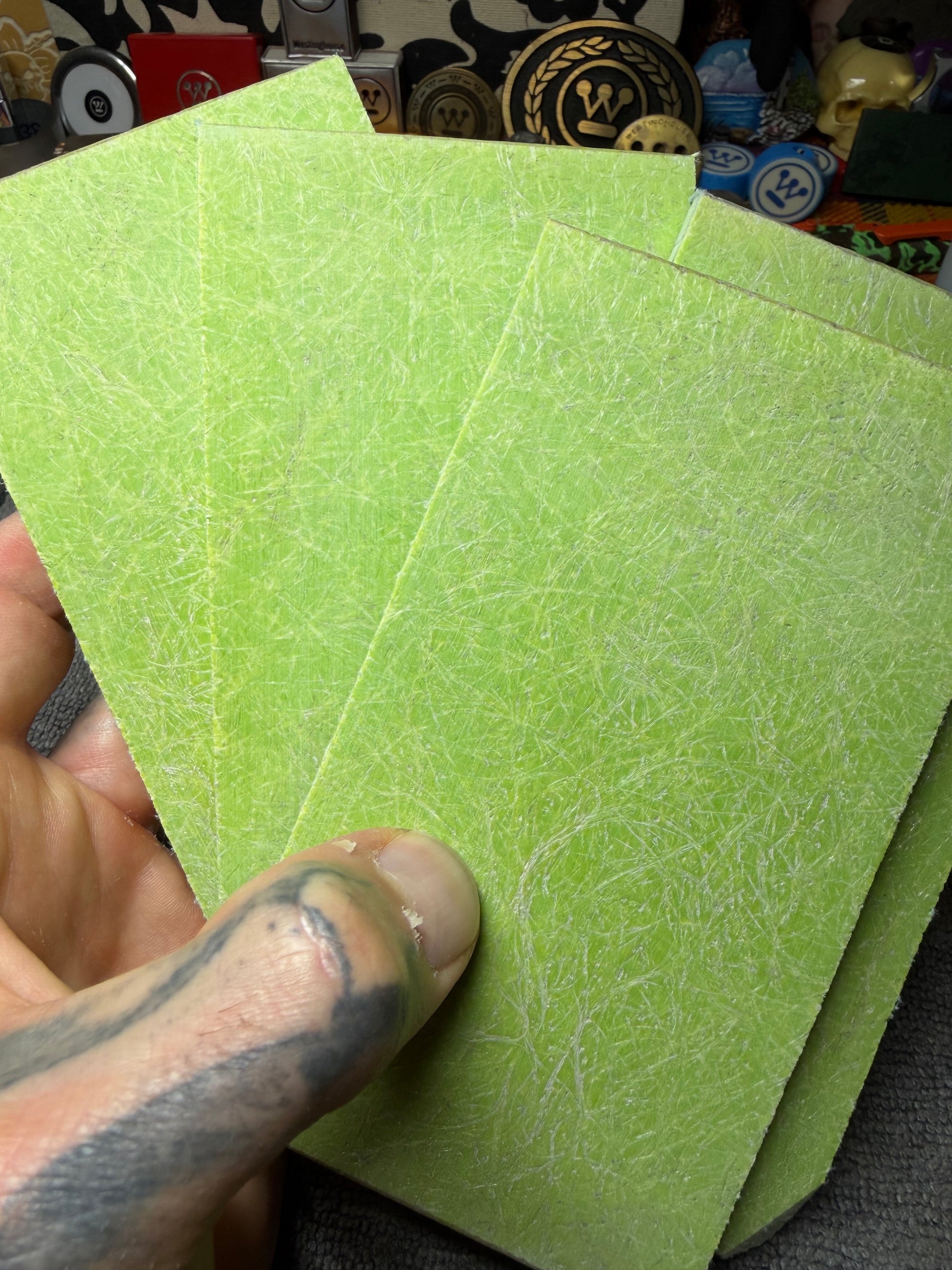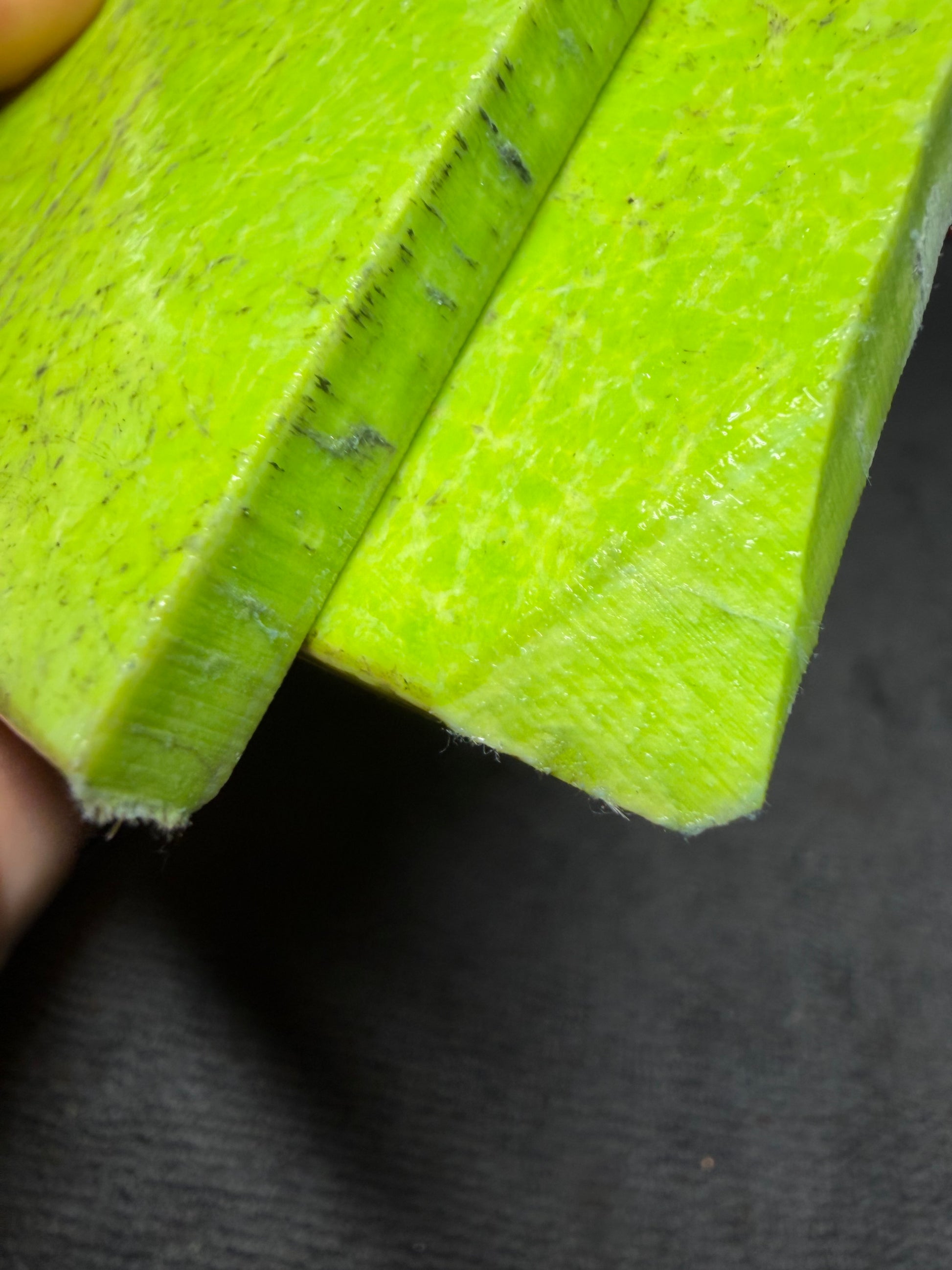 Gorgeous vintage green spun glass Micarta with some very cool layers to it. Very rare material to come across.