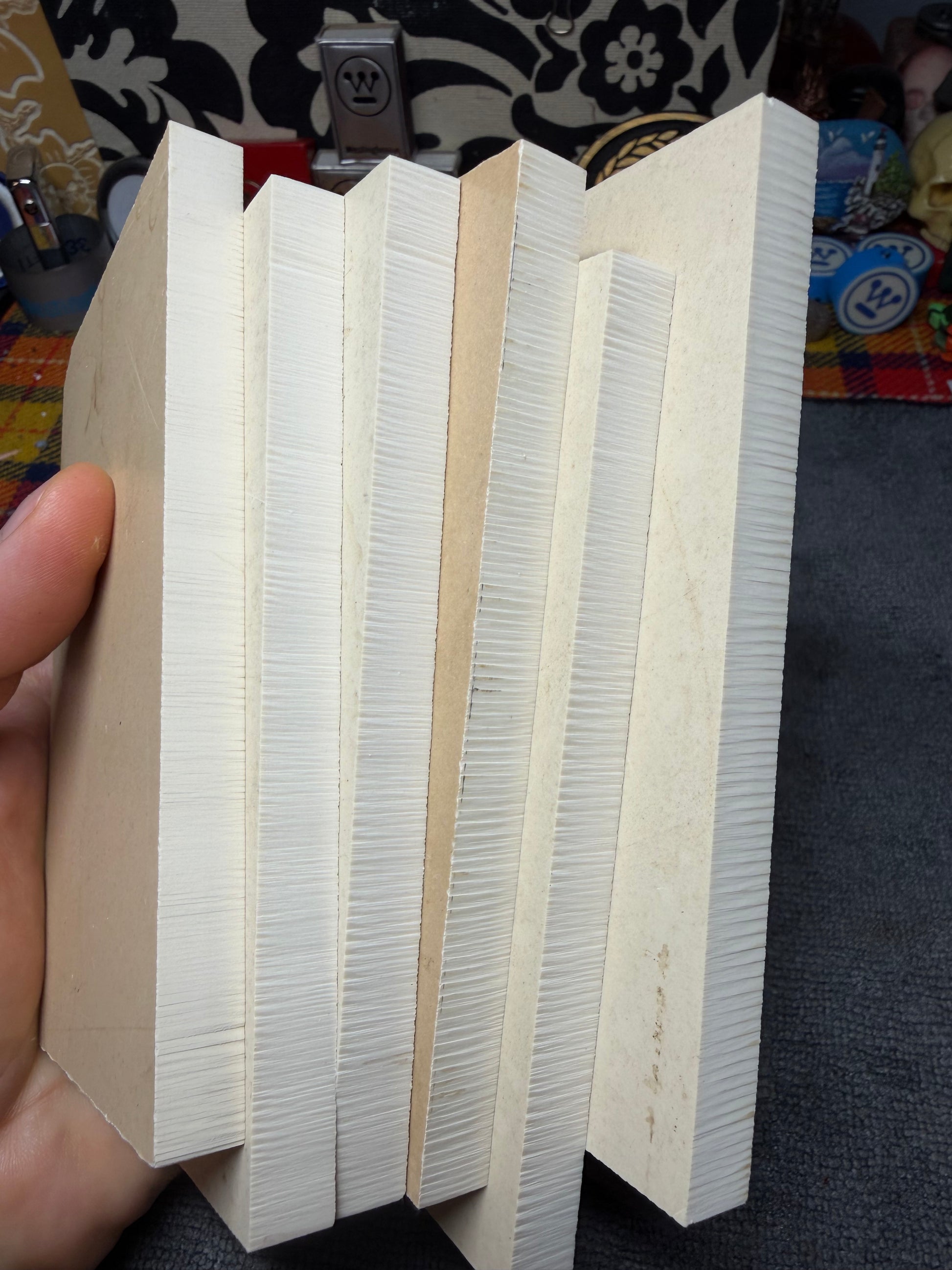 Westinghouse Late-era Ivory Paper Micarta. This will not yellow with patina but will slightly tan over a long period of time. Creamy white interior. Straight from Bob Dozier’s personal stash! Thick enough to rip into to 2 sets of folder scales.